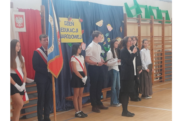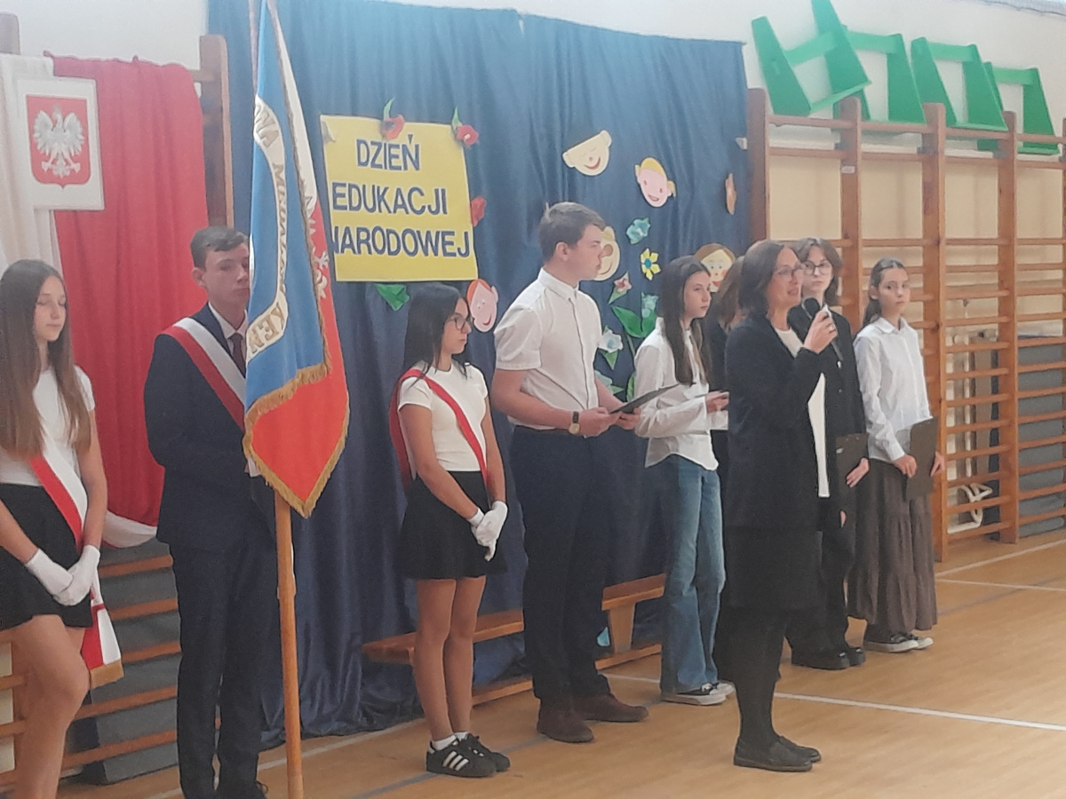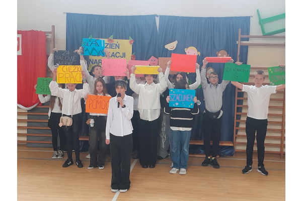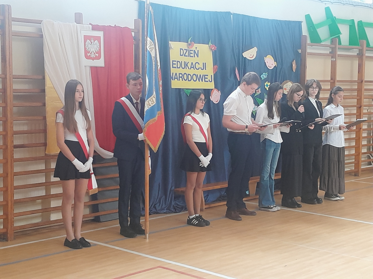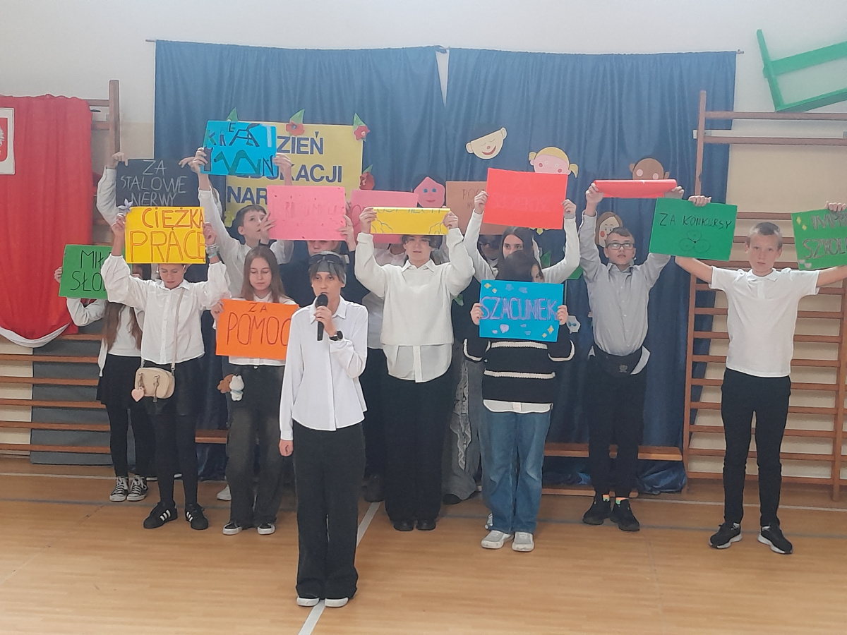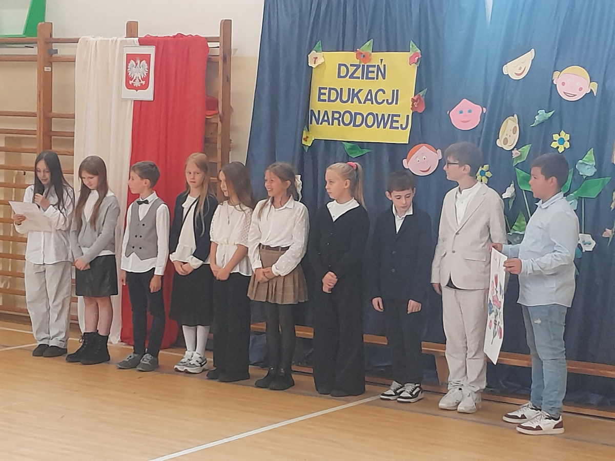 Dnia 10.09.2025 roku odbył się apel z okazji Dnia Edukacji Narodowej. W apelu wzięli udział uczniowie klas 4-8. Po wprowadzeniu sztandaru i odśpiewaniu Hymnu Polskiego w imieniu pani dyrektor Renaty Białeckiej życzenia wszystkim pracownikom szkoły i uczniom złożyła pani Aleksandra Fryca. Każda klasa złożyła nauczycielom przygotowane wcześniej życzenia i podziękowania.