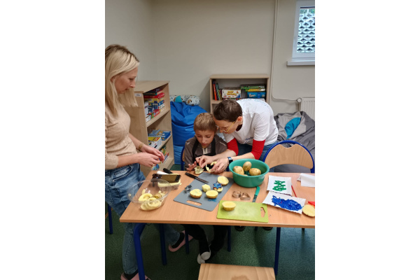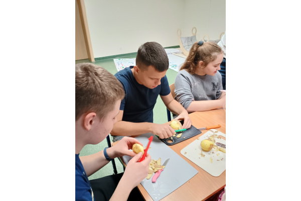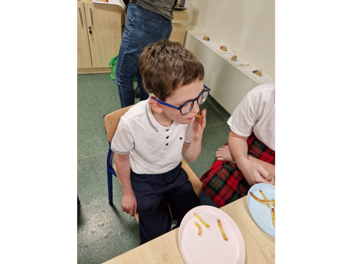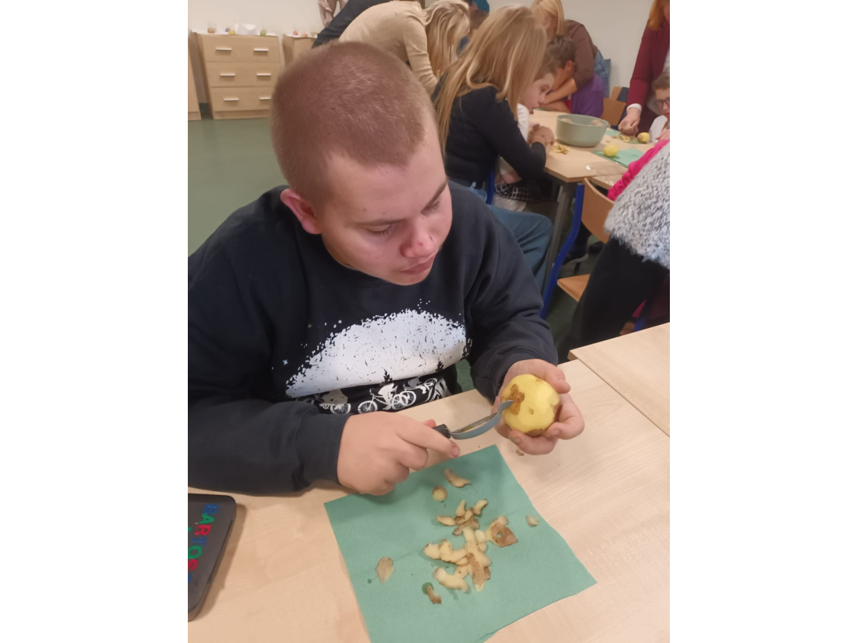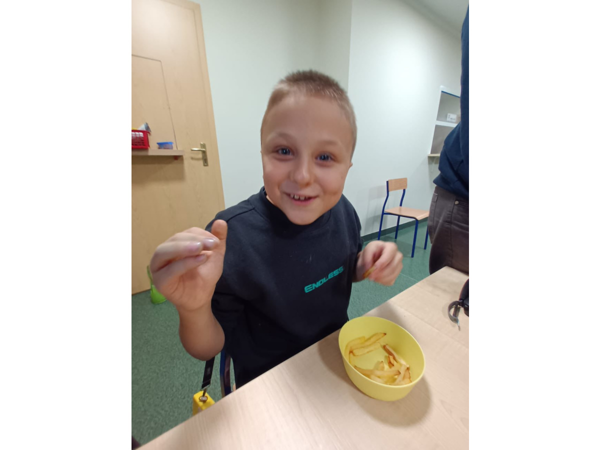 Były jeże wykonane z ziemiaków, ziemniaczane stemple, zawody sportowe z ziemniakami w roli głównej oraz dużo śmiechu i oczywiście… frytki własnej roboty, które wszystkim smakowały wyśmienicie!