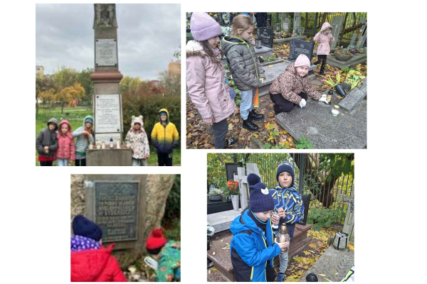 Uczniowie klasy 2a wraz z wychowawcami: A. Niedbalską i O. Szulakowską posprzątali opuszczone mogiły i zapalili znicze na cmentarzu Św. Trójcy w Bydgoszczy.