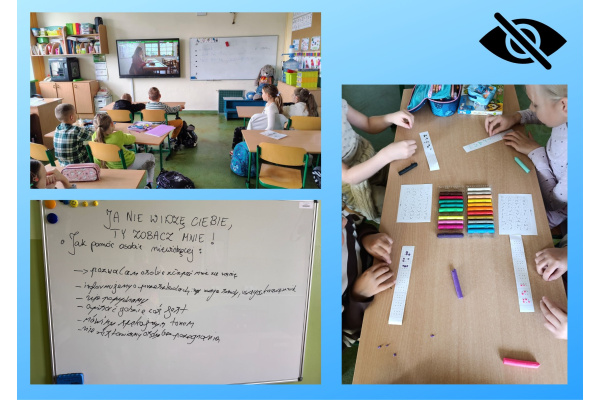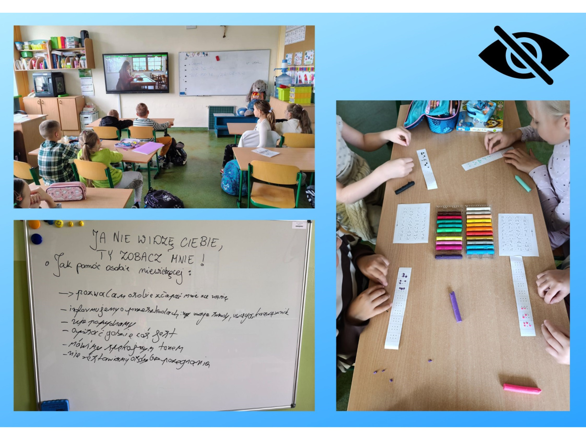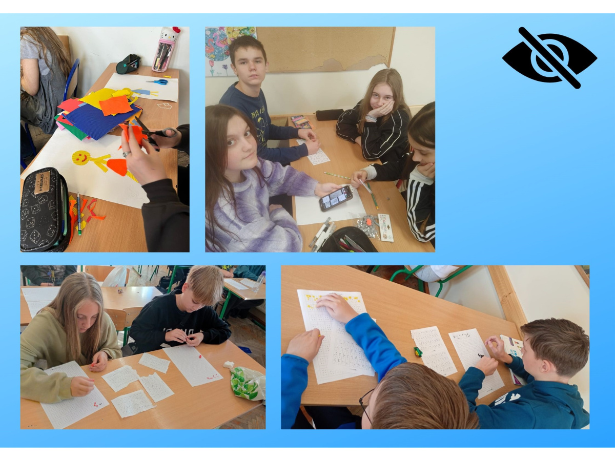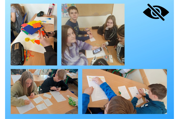 Jako zadanie dodatkowe część uczniów napisała list do kolegów z Kujawsko-Pomorskiego Specjalnego Ośrodka Szkolno-Wychowawczego dla Dzieci i Młodzieży Słabo Widzącej i Niewidomej im. Louisa Braille'a w Bydgoszczy.