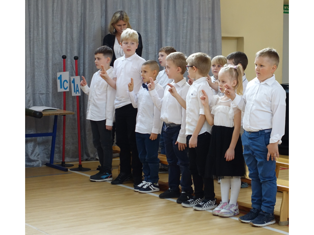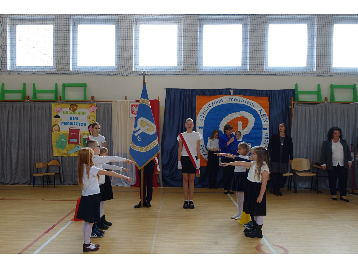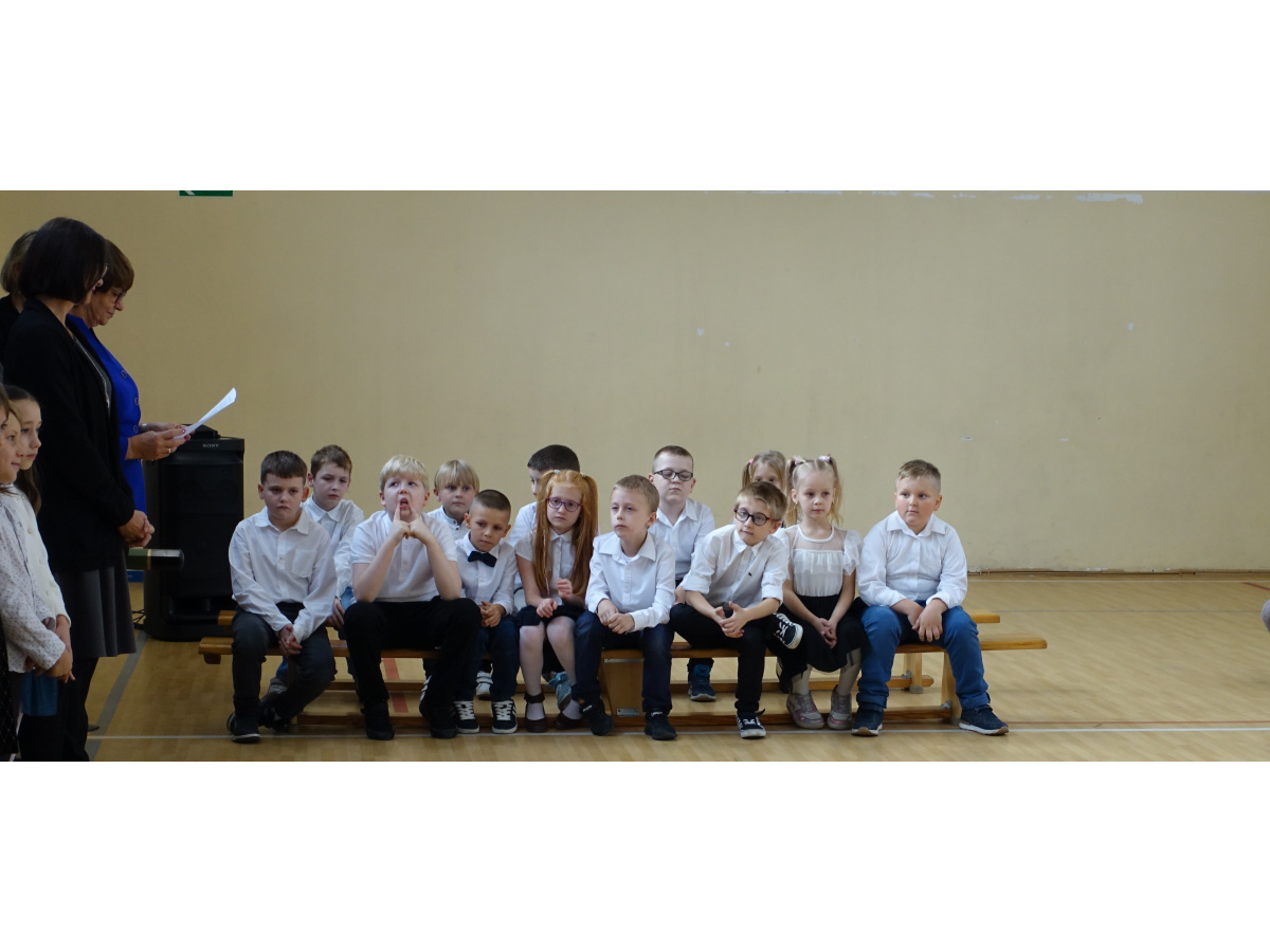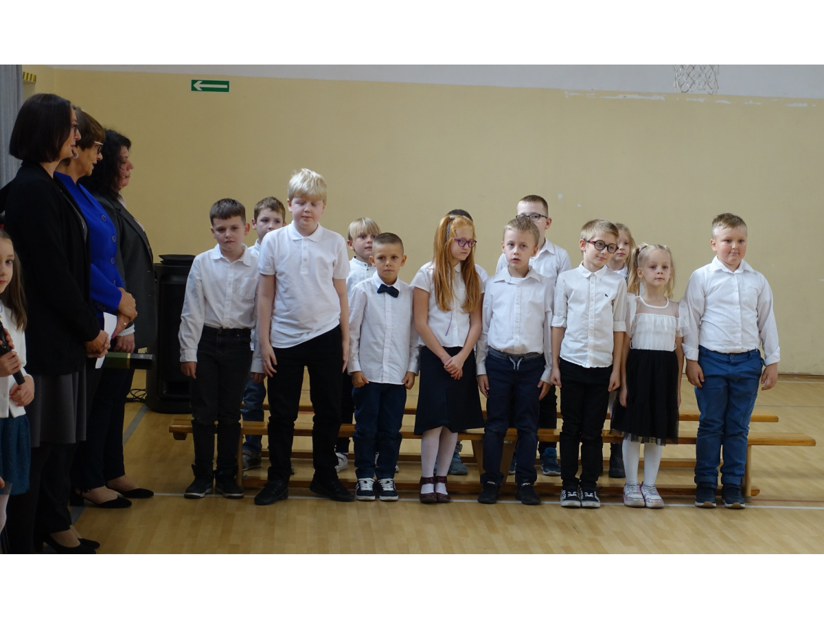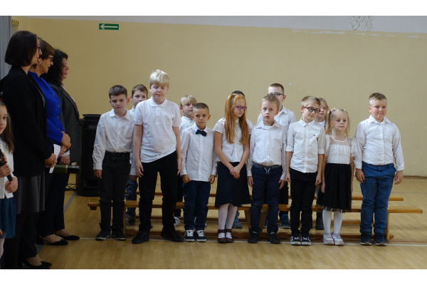W uroczystości wzięli udział rodzice, wychowawcy klas, uczniowie klas 8 i klasy 6b. Część artystyczną przedstawili uczniowie klas drugich. Pierwszaki otrzymały pamiątkowe dyplomy. Na koniec spotkania wykonano wspólną fotografię. Wszystkim pierwszakom życzymy sukcesów w nauce i wzorowego zachowania oraz dużo uśmiechu na co dzień.