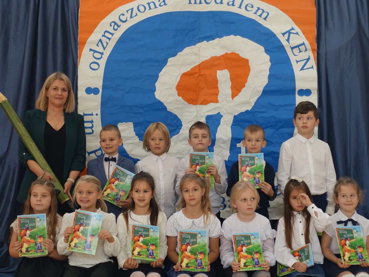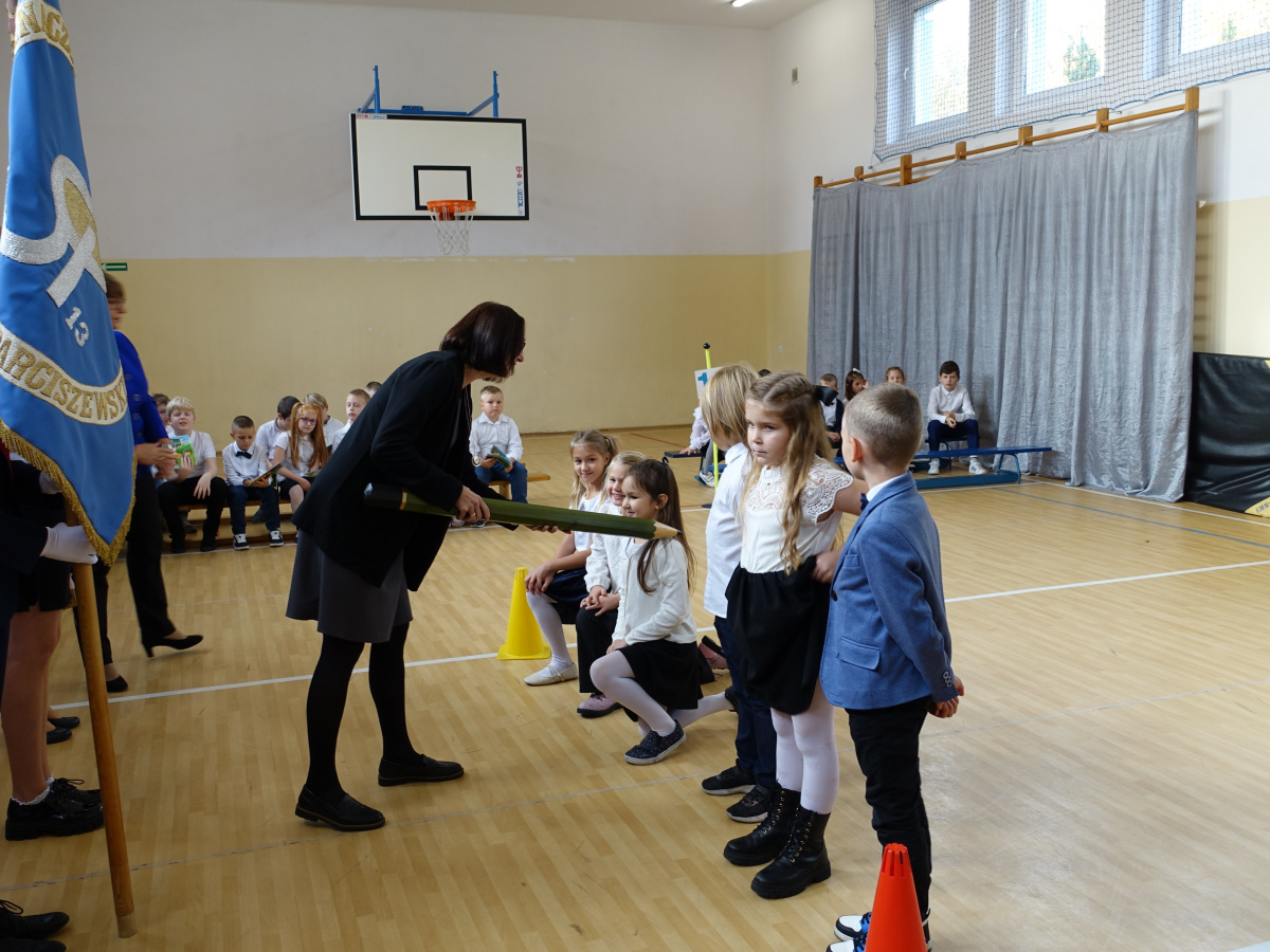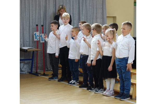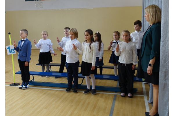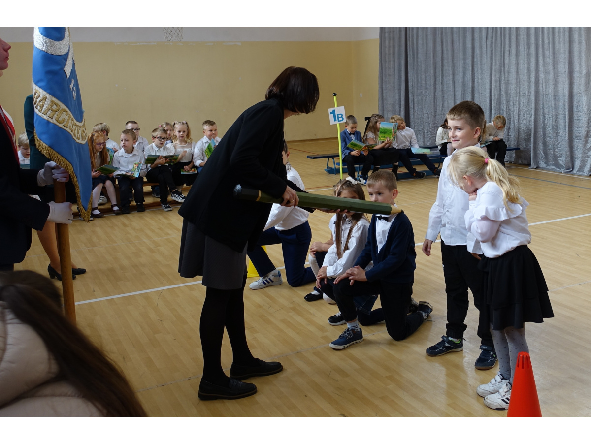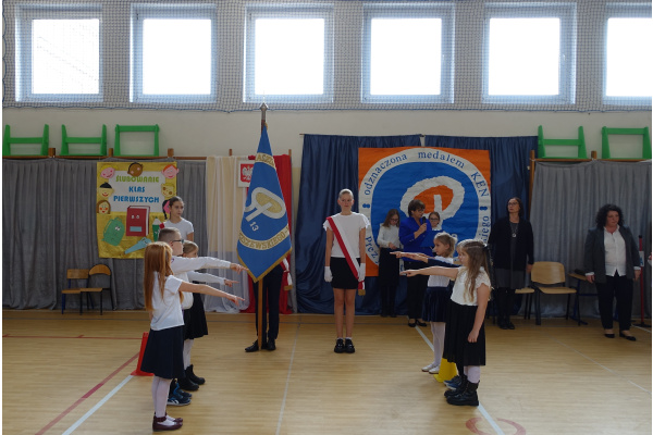 W uroczystości wzięli udział rodzice, wychowawcy klas, uczniowie klas 8 i klasy 6b. Część artystyczną przedstawili uczniowie klas drugich. Pierwszaki otrzymały pamiątkowe dyplomy. Na koniec spotkania wykonano wspólną fotografię. Wszystkim pierwszakom życzymy sukcesów w nauce i wzorowego zachowania oraz dużo uśmiechu na co dzień.