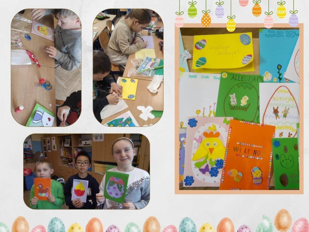 Dzieci z klas 1-3 wykonały kartki podczas lekcji w ramach edukacji wczesnoszkolnej, rewalidacji oraz w trakcie zajęć zorganizowanych w szkolnej świetlicy. W akcję włączyli się również uczniowie klas 4-8, przygotowując kartki podczas zajęć rewalidacyjnych oraz godziny wychowawczej.