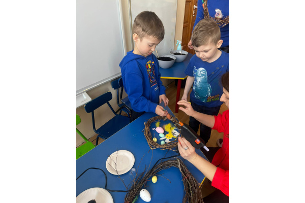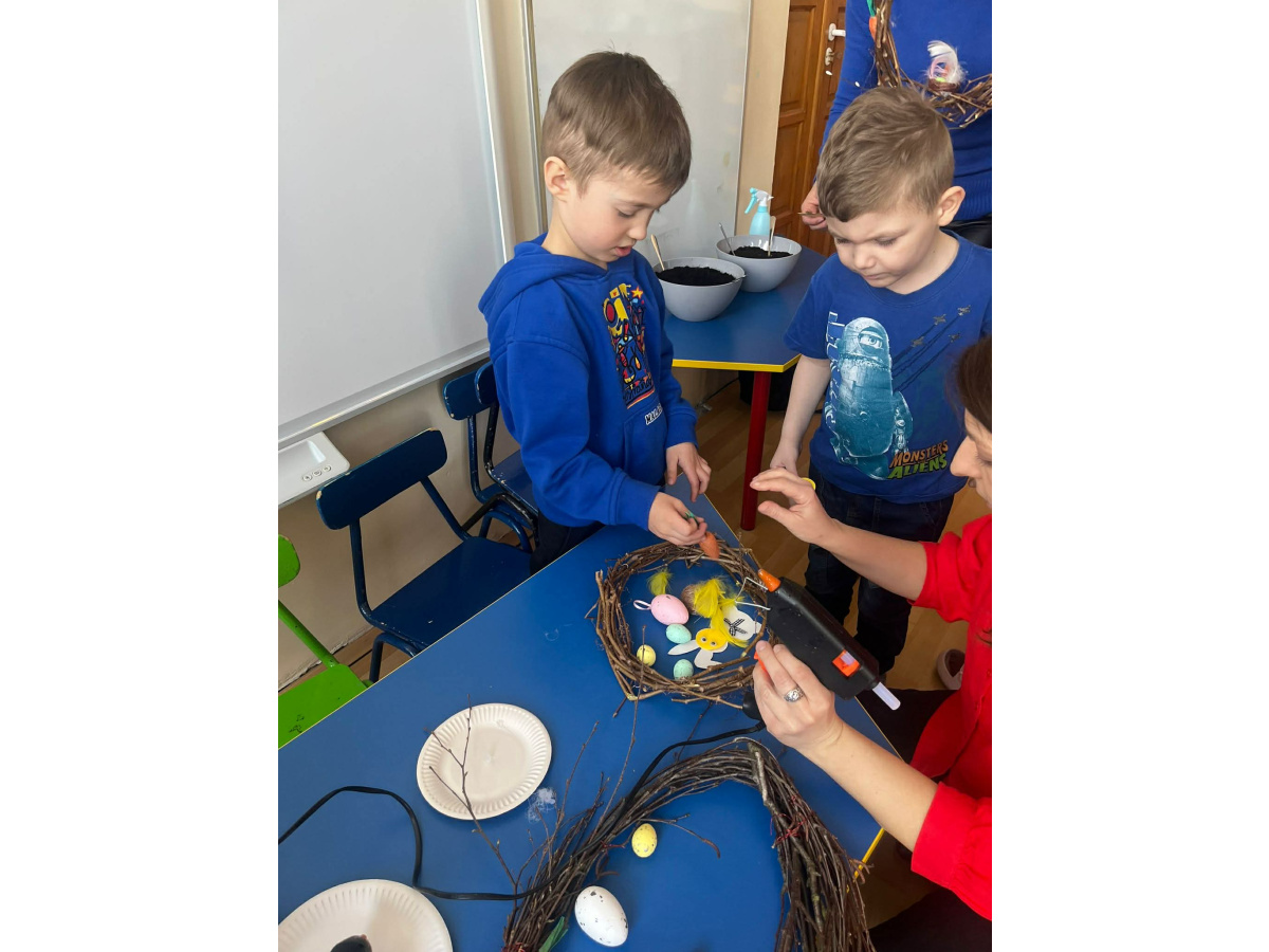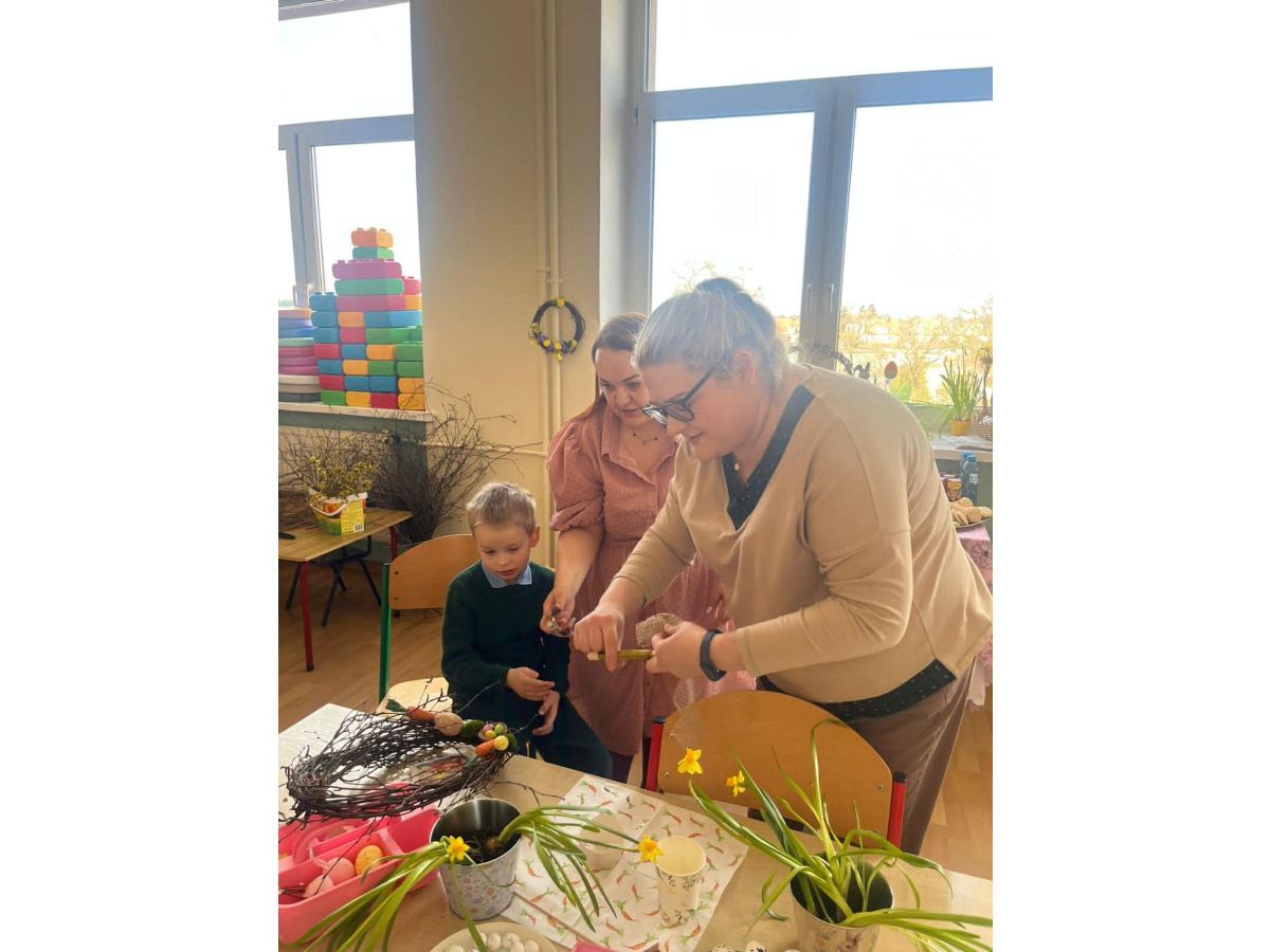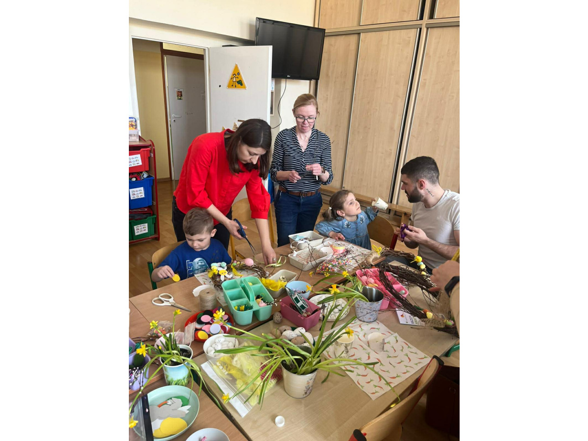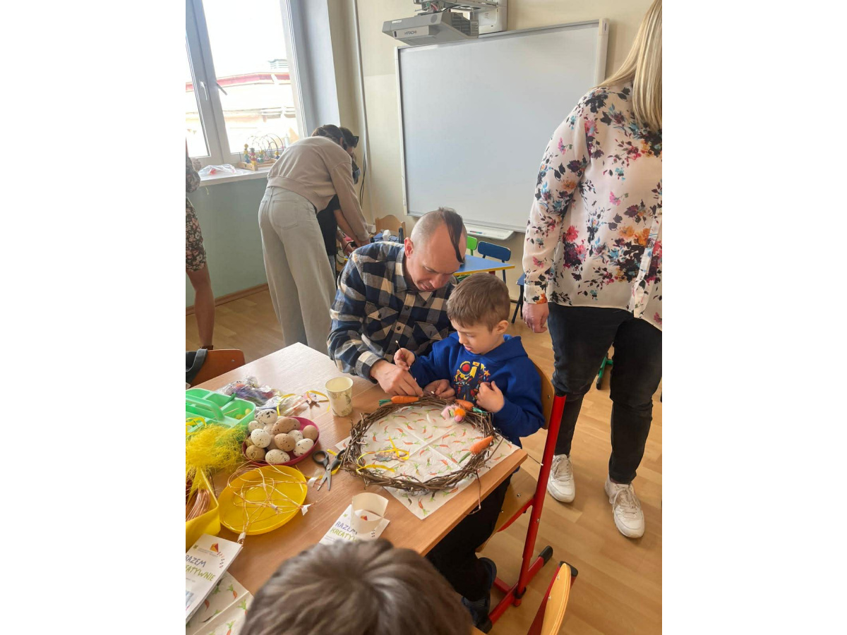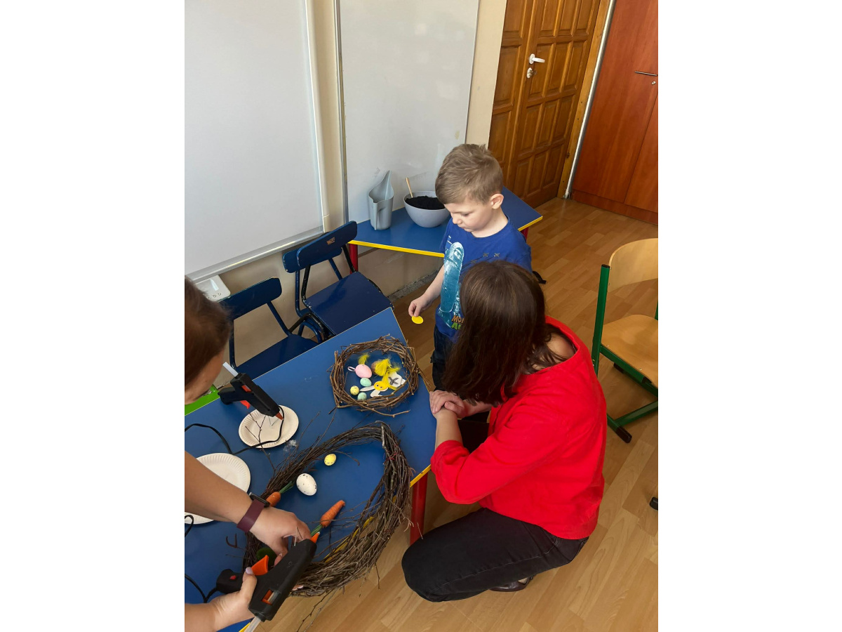 We wtorek w naszym Ośrodku odbyły się wyjątkowe warsztaty kreatywne z okazji Świąt Wielkanocnych, które zgromadziły uczniów oraz ich rodziców. Było to niezwykle ciepłe i radosne spotkanie, sprzyjające integracji oraz wspólnemu spędzaniu czasu w świątecznej atmosferze. Podczas warsztatów uczestnicy mieli okazję wykazać się swoją kreatywnością, wykonując piękne dekoracje wielkanocne. Powstały kolorowe wianki, pełne wiosennych akcentów, a także ozdobne kubeczki, w których wspólnie sadzono cebulki kwiatowe. Każdy z nich został starannie udekorowany świątecznymi elementami, co sprawiło, że prace były nie tylko estetyczne, ale i bardzo osobiste. Nie zabrakło również słodkiego poczęstunku. Na uczestników czekało pyszne marchewkowe ciasto oraz inne pyszności które umiliły czas spędzony przy wspólnej pracy i rozmowach.
